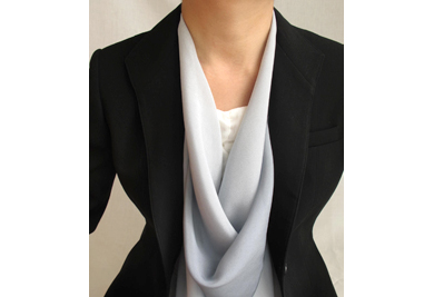 制服が黒であるなら、肌の露出を多くすれば、印象は明るくはなりますが、お仕事柄それは難しいですよね。たとえばペールグレ―やオフホワイトの少し光沢感のあるブラウスやインナーを合わせるとどうでしょう。光沢感のある淡い色は肌映りが良いので、お顔を健康的に見せてくれますし、上品さや厳かな印象も併せもちます。